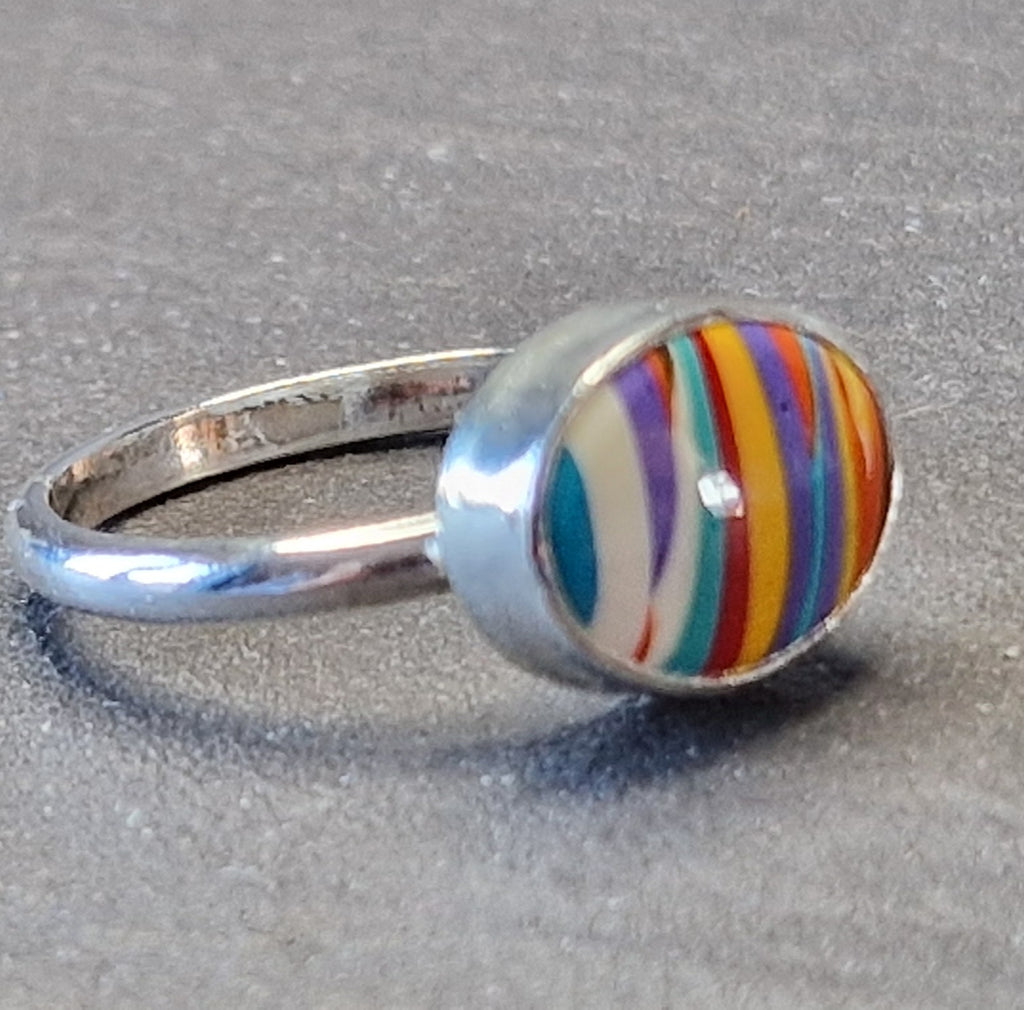 I have set this sweet Surfite canochon in a setting which I have handmade from sterling and fine silver.